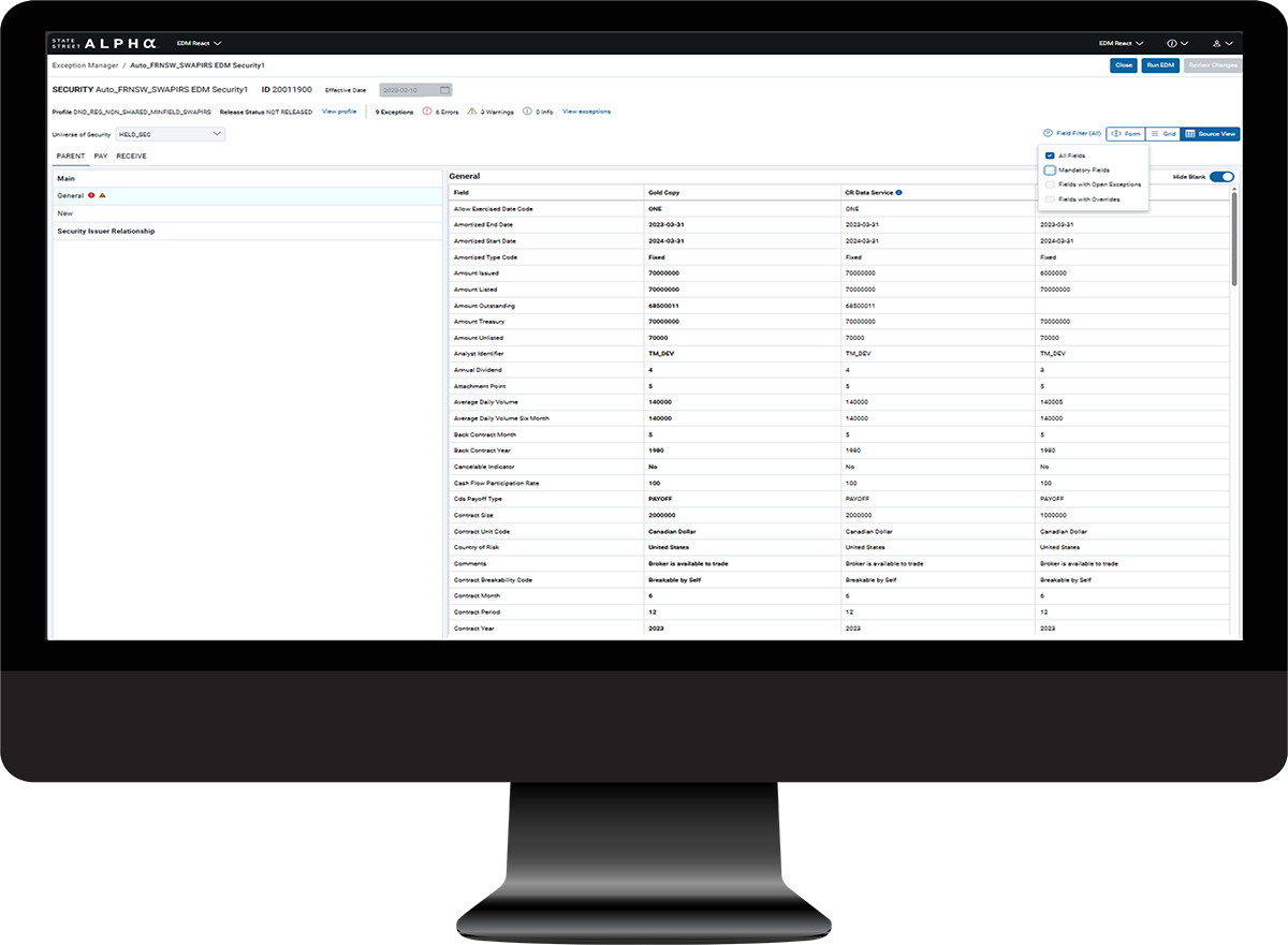 Don’t let incomplete, low quality data slow operations. Quickly produce high quality investment data at scale with our EDM application. Our EDM was architected to produce gold copy data fast.